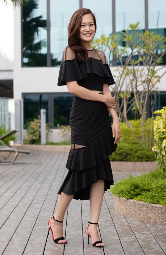 Brigitte Drapey Netted Layered See-through Black Midi Crop Sexy Top
