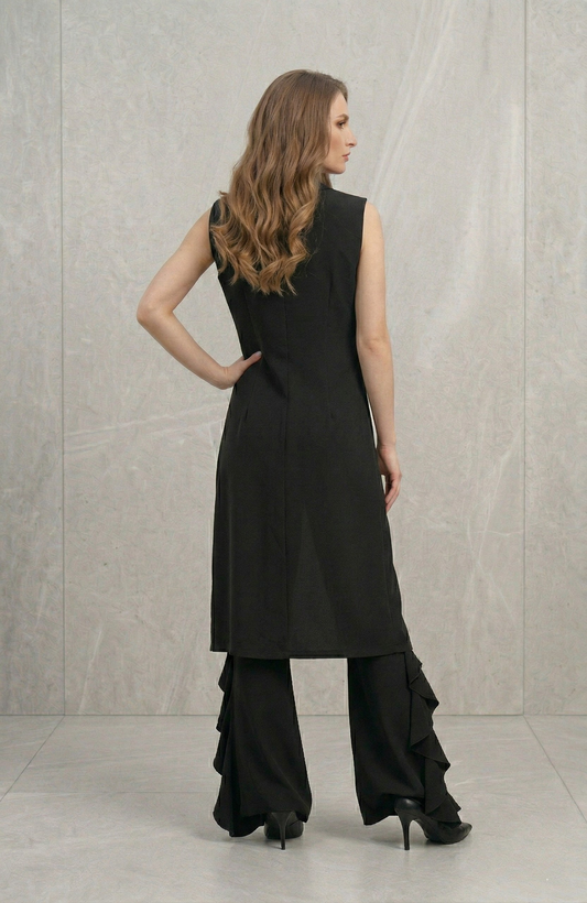 A-Symmetrical Netted Black Dress with Cuffs