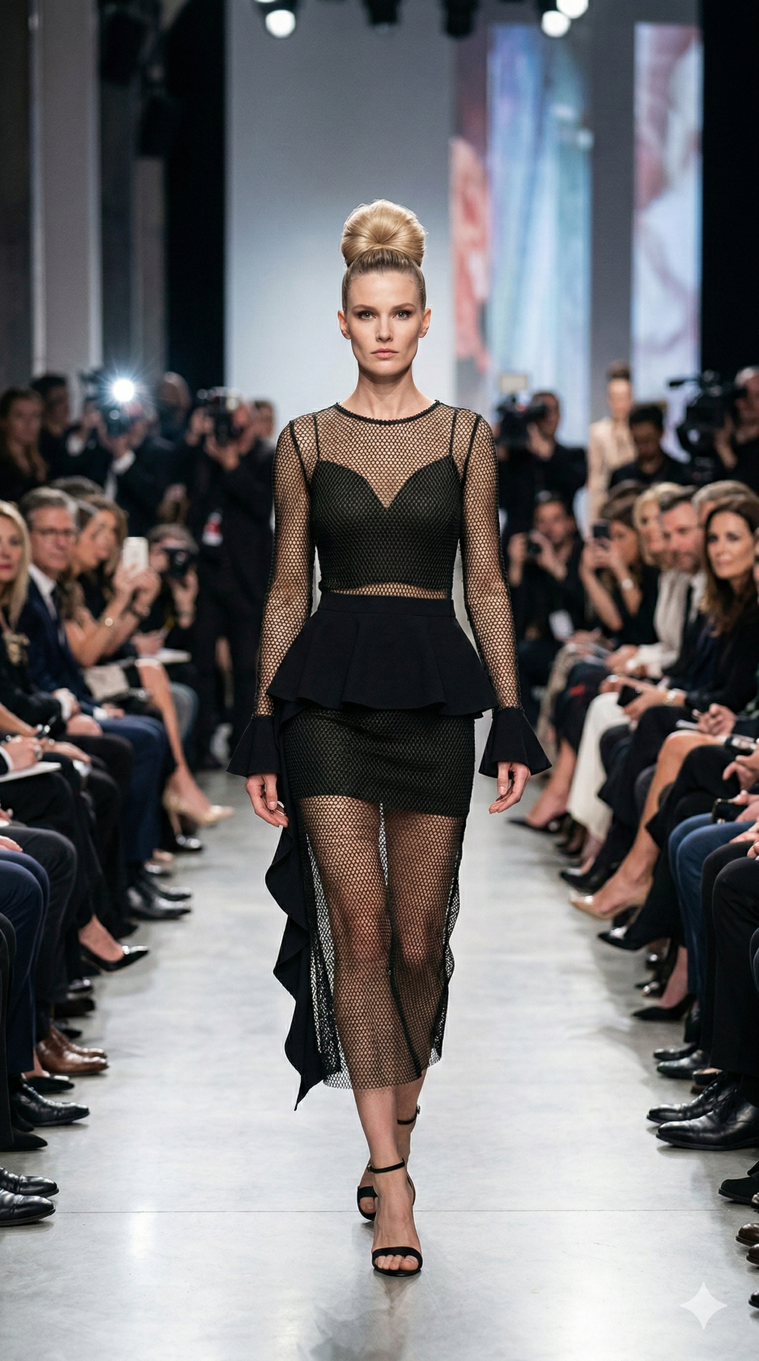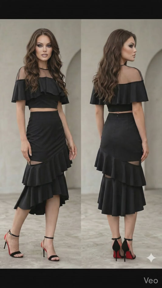 Brigitte Drapey Netted Layered See-through Black Midi Crop Sexy Top